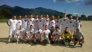 20 Gennaio 2015Dopo la 16a giornata i tornei proseguono senza grossi mutamenti sostanziali delle rispettive classifiche. Nel girone ‘A’ Cafè Retò Aquino continua la sua marcia solitaria in vetta a quota 38 punti dopo la vittoria, 3 a 4, ottenuta contro Amatori Colfelice. Alle spalle della capolista, a otto lunghezze di ritardo, Sangermanese che conquista un’importante vittoria esterna sul terreno di Tecnocasa Cassino per 1 a 2. Deve, invece, accontentarsi di un pareggio, 2 a 2, Professional Service nella trasferta di Sora che lo vedeva opposto al Cenceglie. Un risultato di rilievo è quello ottenuto da Terelle ai danni dei Corsari Colfelice sconfitti dai padroni di casa per 5 a 2. Sarà , tuttavia, il prossimo turno a poter dare un cambiamento, seppur non definitivo, quando ad affrontarsi saranno le prime due. La 17a giornata, infatti, vedrà lo scontro diretto fra la capolista Cafè Retrò Aquino e Sangermanese Piedimonte. Nel girone ‘B’ prosegue la marcia di Cassino Ovest Doc che nel turno di questa settimana deve accontentarsi di un solo punto, raggiungendo quota 40, dopo il pareggio casalingo, 2 a 2, ottenuto contro Vallemaio. Vincono le due inseguitrici, la Longobarda batte in casa, 2 a 0, lo Scauri, mentre l’Atletico Pontecorvo conquista i tre punti sul terreno degli Amatori Coreno vincendo per 2 a 3. Rinascita Monticelli vince agevolmente, 3 a 5, sul campo di Belmonte, mentre Tredici Gradi Cassino non ha difficoltà ad affondare, 6 a 0, il Bellaria. Prossimo turno impegnativo per la capolista, la formazione di Losani dovrà vedersela, infatti, con l’Atletico Pontecorvo, ora al terzo posto in classifica, che potrebbe, in caso di vittoria, dare la possibilità alla Longobarda, impegnata contro Bellaria, di rosicchiare punti proprio alla formazione cassinate. Ancora un pareggio a reti inviolate, per Rocca D’Evandro nel derby campano contro Atletico Marzano Appio che consente a Tibia e Peroni (nella foto)di mantenere il vantaggio di due lunghezze sulla formazione campana, dopo la vittoria, 1 a 3, ottenuta sul terreno di Cervaro. Pietravairano con la vittoria, 1 a 3, contro Drink Team Lord resta saldamente ancorata al terzo posto in classifica, a 37 punti, ed a sole tre lunghezze da Rocca D’Evandro. Molto più equilibrato il girone ‘D’ dove Yammo.it resta in vetta a quota 39 punti, dopo la vittoria esterna, 0 a 2, su Castelforte a due lunghezze di vantaggio su La Ferrara che con una goleada, 10 a 0, sullo Sporting Pignataro mantiene la piazza d’onore nel torneo. Non è da meno, in fatto di reti segnate, Vairano Scalo che con un 6 a 0 rifilato a Caffè del Corso mantiene saldamente la terza posizione a soli tre punti dalla capolista.