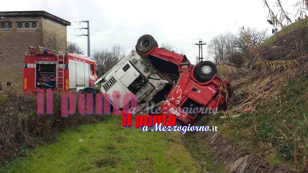 Si è ribaltato alcune mentre imboccava la corsia di uscita del casello autostradale di Cassino. Si tratta di un grosso camion partito dal Trentino, carico di mele che avrebbe dovuto scaricare ad alcuni supermercati della zona. Imboccata la corsia di decellerazione, in piena curva il mezzo si è rimaltato finendo nella scarpata sottostante, terminando la caduta su una strada esterna alla rete autostradale. Immediati i soccorsi delgi operatori del 118 e dei vigili del fuoco oltre agli agenti della sottosezione di polizia stradale di Cassino. Gravemente ferito l’autotrasportatore, un 52enne di Minturno, che è stato elitrasportato a Roma.
