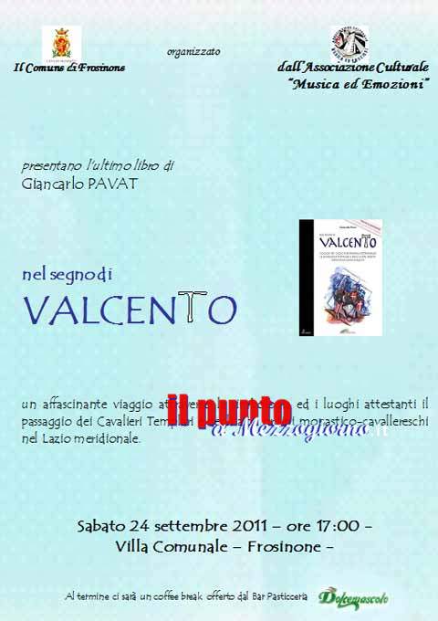 21 Settembre 2011I cavalieri Templari arrivano a Frosinone, sabato 24 settembre, alle ore 17.00 alla Villa Comunale. Un pomeriggio all’insegna della cultura, della storia e delle emozioni del Medio Evo grazie all’iniziativa messa in cantiere dall’Associazione Culturale “Musica ed Emozioniâ€. Manifestazione che vedrà l’esibizione con tanto di combattimento dei cavalieri Templari di San Paterniano di Ceprano, ma avrà il suo momento centrale nell’attesa presentazione del libro di successo di Giancarlo Pavat “Nel segno di Valcento†dedicato appunto alla presenza dell’antico ordine cavalleresco dei Templari in Ciociaria. Presenterà l’evento la giornalista Serena Pallone di Fiuggiwebtv, l’emittente on-line curerà anche le riprese della manifestazione. “Nel ringraziare il Comune di Frosinone per l’autorizzazione all’uso della presente sala†spiegano i rappresentanti dell’associazione “Musica ed emozioni†“vogliamo innanzitutto esprimere riconoscenza nei confronti dei privati e delle ditte che con il loro contributo hanno creduto al progetto di tre giovani ragazzi di fare cultura all’interno della nostra provincia. È solo grazie alle loro donazioni ed a quelle future che si potrà continuare ad organizzare eventi come il concerto di pianoforte del 30 gennaio presso la Chiesa San Paolo di Frosinone, la 1^ mostra d’arte “artisti ciociari†svoltasi nei giorni 01 e 02 giugno presso la Villa Comunale di Frosinone e la presente manifestazione.†L’evento di sabato 24 settembre sarà un vero e proprio tuffo nel passato… nel XIII° e XIV° secolo… realizzato attraverso la rievocazione storica eseguita dai membri dell’Associazione Cavalieri Templari di San Paterniano di Ceprano ed al nuovo libro di Giancarlo Pavat “Nel segno di Valcentoâ€. Rivivremo suoni ed emozioni di un passato che continua ad affascinare ed a suscitare profondo interesse tra gli studiosi e/o semplici appassionati di storia: Infatti il libro che verrà presentato dallo scrittore Giancarlo Pavat è un lavoro accurato ed ispirato ai più solidi principi di ricerca storica, nel quale l’autore ha presentato le varie vicende in un contesto preciso ed efficace che va al di là di preconcetti e/o facili falsificazioni soprattutto quando si parla di certi argomenti. Il modo assolutamente nuovo ed accattivante con il quale Pavat ha svolto le ricerche, attrae il lettore che, nel rivedere i luoghi descritti in quest’opera, si sentirà un piccolo esploratore alla ricerca di simboli e tracce lasciate dai Cavalieri Templari e dagli altri ordini monastico-cavallereschi in questo territorio ciociaro. Una giornata da non perdere quindi, ed un libro da leggere con il quale Pavat restituisce il giusto apprezzamento ed importanza storica alla Ciociaria,terra troppo spesso oggetto di facili luoghi comuni, ma che invece merita di essere tenuta in ben altra considerazione.