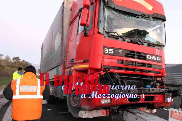 Incidente sull’A1: coinvolti due camion e furgone, ferita coppia di anziani