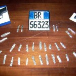I militari del Nucleo Operativo e Radiomobile, alle ore 21.30 circa del 12 gennaio 2012, insospettiti da alcuni strani movimenti, hanno proceduto al controllo dei due. Nel corso della loro perquisizione personale e domiciliare, venivano rinvenuti circa 78 grammi di hashish, una pistola giocattolo modificata in arma da sparo semiautomatica, perfettamente efficiente, completa di caricatore contenente due proiettili calibro 8mm, e un motociclo risultato di provenienza furtiva, sul quale era stata applicata una targa contraffatta.