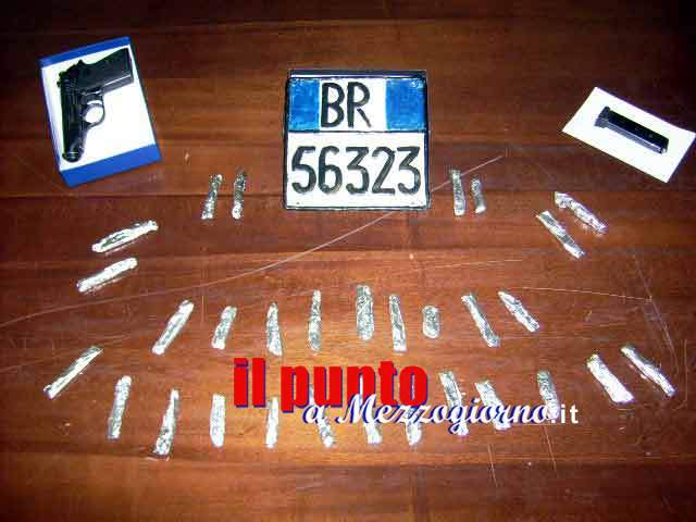 Lo stupefacente, già suddiviso in trenta dosi e destinato ai consumatori di quel centro, è stato sequestrato unitamente all’arma, al munizionamento ed al motociclo, che verrà restituito al proprietario.