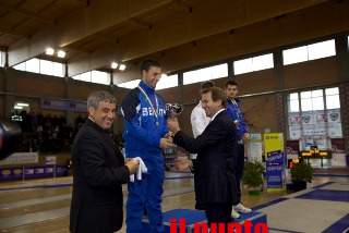 15 Aprile 2012 0 Di Felice PensabeneSeconda entusiasmante giornata del Campionato Italiano Under 23 di Scherma a Cervaro. Dopo una prima giornata ricca di emozioni che ha laureato i primi due campioni d’Italia, Rossella Gregorio (Fiamme Oro) nella sciabola, e il piemontese Lorenzo Buzzi del club scherma Casale Monferrato nella spada, nella splendida cornice del palasport, alla presenza di un folto pubblico, si sono svolte le prove di spada femminile e sciabola maschile. A scendere in pedana ben 72  ragazze provenienti da ogni parte d’Italia, alla fine ha prevalso, laureandosi campione d’Italia 2012, la portacolori dell’Esercito, Brenda Briasco, che in finale ha sconfitto per 15-11 Eugenia Falqui del Club Scherma Roma. Sul podio anche Chiara Micheli (Club Scherma Foligno) e Valentina Carlini (Club Scherma Rapallo). Ottimo il livello tecnico della prova con ragazze di interesse nazionale che hanno dato buone indicazioni anche in funzione delle selezioni per la nazionale italiana. Nella prova di sciabola maschile, invece, a vincere è stato Stefano Scepi, tesserato per la Lazio Scherma Ariccia. Il neo campione italiano ha avuto la meglio, in finale, per 15-14 su Gabriele Foschini, in forza all’Esercito. Sconfitti in semifinale e dunque sul terzo gradino del podio, Matteo Gallo della Gemina Scherma e Stefano Sbragia, in forza ai Carabinieri. Anche in questa prova il tasso tecnico è stato elevato e tutto fa ben sperare per il futuro  di questa disciplina sempre alla ricerca di nuovi talenti per il dopo Montano. Ma la seconda giornata del campionato si è caratterizzata soprattutto per l’inaugurazione del palasport – alla presenza, tra gli altri, del presidente Abbruzzese,  Tajani, Pallone e il sindaco Marrocco – nel corso della quale il rettore Attaianese ha consegnato alla città di Cervaro una scultura celebrativa (nella foto) fatta da Roberto Tamburrini, artigiano di Atina. «La nascita di un nuovo impianto sportivo è un evento di grande importanza per la comunità – ha detto il Rettore – poiché rappresenta lo slancio verso i sogni: lo sport è fucina di vita che educa all’impegno e a credere profondamente nelle proprie passioni». Nella seconda giornata manifestazione arricchita anche dalla presenza di centinai di bambini della scuola di Cervaro e del secondo circolo di Cassino, oltre che dalla Croce Rossa Militare, 80° Rav Roma e Croce Rossa di Sant’Elia. «Ringrazio il Magnifico per la sensibilità e tutti coloro che hanno permesso lo svolgersi di queste olimpiadi. Un plauso particolare – ha dichiarato Terranova della Federazione Scherma Cus Cassino – al presidente Abbruzzese per il sostegno e l’impegno profuso verso questa tre giorni di campionati».