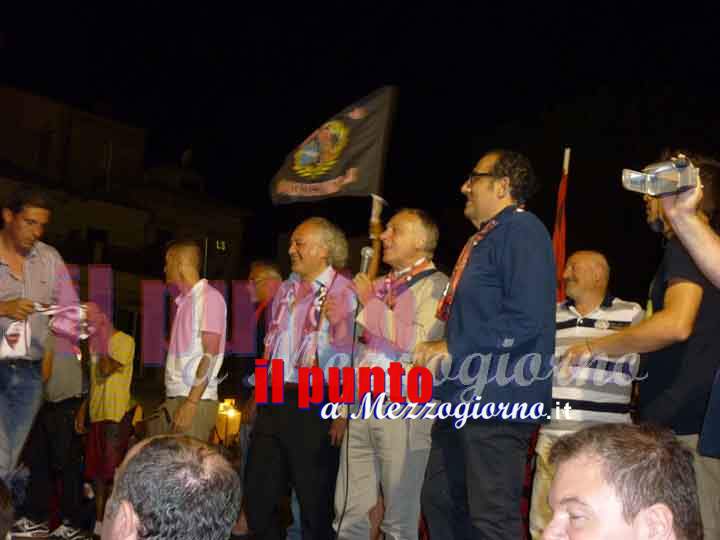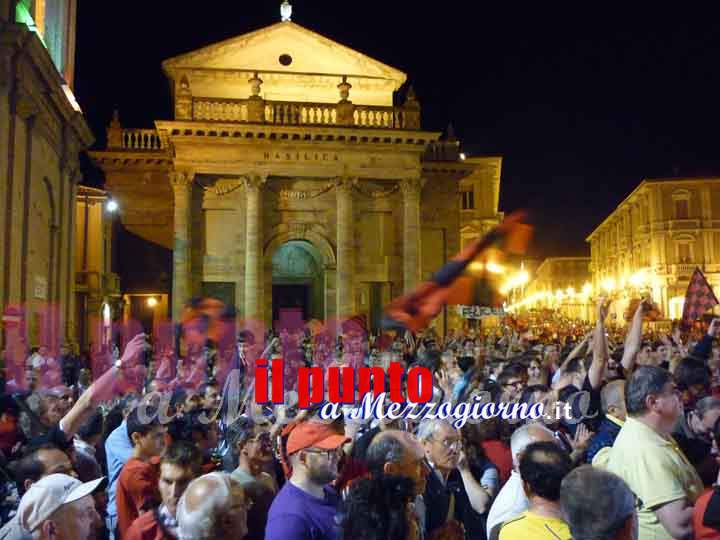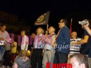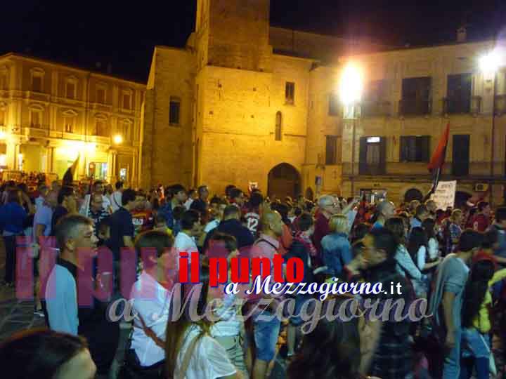 Ieri sera sul palco allestito in piazza, che sembrava poggiare su una marea di gente, sono saliti gli amministratori locali che alla folla in festa, hanno promesso il loro impegno per preparare la citta’ al meglio in vista dell’inizio del campionato cadetto.