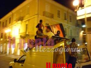 C’era poi chi, forse per una promessa fasta, e’ rimasto in mutante nel centralissimo Corso Trento e Trieste. insomma, una overdose gioiosa di calcio mania che ha coinvolto tutti, anche coloro che, magari, di calcio nel masticano poco. Una medicina, speriamo, anche per l’umore dettato da un periodo di crisi che, certamente, non esalta nessuno. Quindi, che ben venga tutto cio’ che alza l’umore.