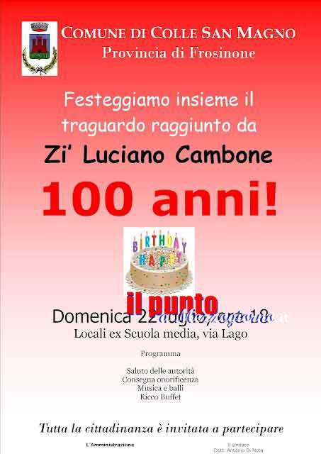 Era il 1912, l’anno in cui nasceva anche Luciano Cambone di Colle San Magno, che il prossimo 24 luglio taglierà il traguardo dei 100 anni.
