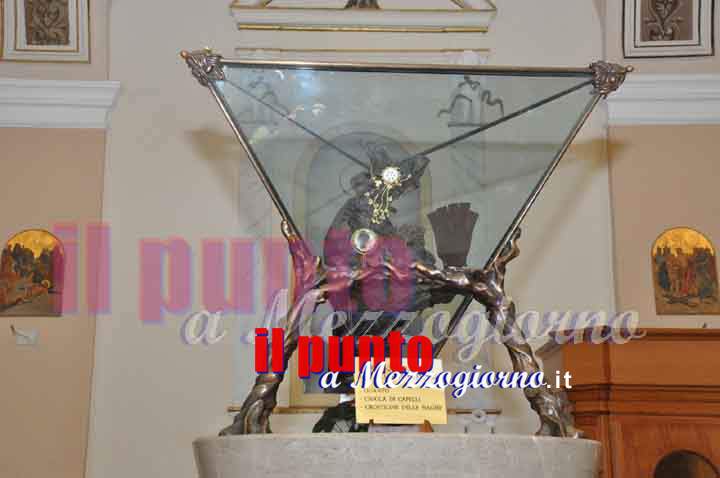 Padre marciano ci mostra una cassettina “Qui conserviamo i suoi capelli fin da quando i suoi confratelli glieli tagliavano per fare la chierica. Ci sono capelli scuri, di quando lui ancora era giovane e qualcuno, evidentemente, già credeva nella sua Santità a tal punto da metterli da parteâ€. Poi ci sono i pezzi più recenti, come ad esempio la copia autentica del foglio Matricolare che ad aprile il comandante della Caserma Militare di Caserta, il colonnello Luciano Iannetta, ha donato al museo. “Risale al periodo in cui Padre Pio è stato militare di leva e quello è il foglio del congedo e della valutazione. Questa iniziativa, come altre, rientra nei festeggiamenti per i 125 anni dalla sua nascitaâ€.
