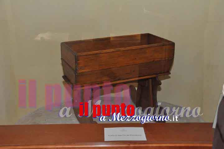 Il pezzo più importante, o quello che in tanti reputano tale, però, è tutto di legno ed è stato donato al museo da Pia Forgione, la nipote di Padre Pio che oggi, ultranovantenne, è l’ultima parente diretta ancora in vita del Santo. “La culla che il museo conserva gelosamente è quella con cui mamma Peppa ha cullato tutti i suoi figli tra cui Francescoâ€. E’ innegabile che quel pezzo di legno riscuote un fascino e un interesse evidente dai pellegrini; probabilmente perché immaginano il neonato Francesco Morgione, rannicchiato in quel contenitore stretto e resistente. Ci sono poi oggetti che nascondono veri aneddoti del Santo, come ad esempio il calice che Padre Pio ha adoperato nei sei anni di sacerdozio nella parrocchia di Sant’Anna, dal 1910 al 1916, ritrovato quasi per caso nella chiesetta. “All’epoca si pensava che avesse il tifo e si temeva anche che la malattia potesse essere contagiosa. Per questo Padre Pio chiese in dono al Padre Provinciale un calice che potesse usare solo lui evitando che i confratelli potessero rischiare il contagioâ€. Non era neanche anziano che già i suoi confratelli sapevano che sarebbe diventato Santo e, per questo, ogni cosa che lo riguardava andava conservato.
