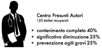 Il percorso è gratuito, e 120 stalker sono già stati risocializzati lasciando intravedere alle proprie vittime lo spiraglio di una speranza: quella di vivere una vita normale. Il protocollo ha prodotto una serie di dati incoraggianti: il 40% degli stalker ha raggiunto un completo contenimento degli atti persecutori, mentre nel 25% dei casi si è verificata una significativa diminuzione dell’attività vessatoria, della recidiva, e la prevenzione degli agiti più gravi.