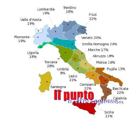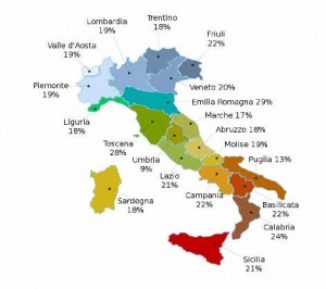 Nella cartina la percentuale di incidenza dello stalking (vittime) per regione:
