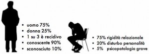 Per quanto riguarda gli stalker, il 20% soffre di un disturbo di personalità , mentre solo il 5% soffre di una psicopatologia grave, con totale perdita di contatto con la realtà . Il 70% presenta una rigidità nelle relazioni, che si traduce in una difficoltà di gestione delle relazioni interpersonali. Questo fenomeno è riconducibile ad uno stile di attaccamento insicuro, evitante e ambivalente. Spesso sono soggetti insospettabili: funzionano bene nella società e mantengono un buon contatto con la realtà , ma sono dei manipolatori e bugiardi patologici. La violenza psicologica che attuano ai danni della vittima inizia in tempi insospettabili e sfocia nello stalking nel momento in cui quest’ultima decide di abbandonare la relazione.