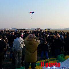 Dopo varie esibizioni aeronautiche, che si sono protratte fin dal sabato mattina, puntualmente alle 15.00, la befana è discesa all’aeroporto non solo con il paracadute, ma anche con un piccolo aereo e anche con l’elicottero. Attesa da migliaia di persone tutte col naso all’insù.