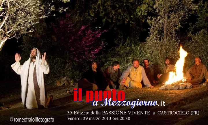 L’appuntamento è venerdì alle 20.30 a Castrocielo, quando nelle vie del centro verrà rappresentata l’antica Gerusalemme e gli ultimi momenti della vita di Gesù. Organizzata dalla Pro Loco di Castrocielo, in collaborazione la Parrocchia Santa Lucia, con il patrocinio dell’assessorato al Turismo della Regione Lazio e del Comune di Castrocielo, la Passione Vivente è tra le manifestazioni culturali e religiose più importanti e rappresentative di Castrocielo, che ogni anno richiama migliaia di spettatori che, da tutta la Regione e oltre, vengono ad ammirare la sacra rappresentazione, realizzata con attori del posto e uno scenario che coinvolge tutto il centro del paese.