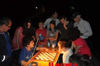 21 Giugno 2013E…state ai giardinetti, venerdì e sabato, adulti e bambini si sono divertiti sfidandosi nella II Edizione del Torneo di Dama che il Comitato Civico “Laboratorio Scaloâ€, con il patrocinio del Comune di Frosinone ed in collaborazione con la Federazione Italiana Dama – Circolo del Basso Lazio, ha organizzato ai giardinetti dello scalo. La manifestazione si è conclusa con la “finale vivente”. I finalisti del torneo, infatti, si sono sfidati in un’avvincente partita giocata su una dama gigante dove le pedine erano impersonate da allegri bambini vestiti di bianco e di nero. La finale, caratterizzata da un assoluto equilibrio tra gli sfidanti, si è conclusa tramite lancio della monetina con la vittoria di Angelo Santangeli su Mario Patriarca, essendosi il match conclusosi alla pari.