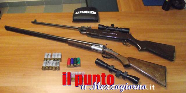 Nel corso di tale attività venivano rinvenuti e sequestrati un fucile tipo doppietta a cani esterni cal. 16 con matricola abrasa, presumibilmente provento di furto, ed una carabina ad aria compressa cal 4.5 dotata di ottica, ed alcune munizioni, il tutto illegalmente detenuto.