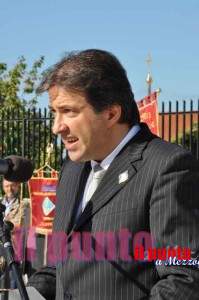 Il Vice Sindaco della Città di Bellona, Dott. Giovanni Sarcinella, in rappresentanza del Sindaco Dott. Filippo Abbate, nel suo discorso: “Ringrazio le Autorità Militari, Civili e Religiose, le Associazioni, i Docenti, gli Studenti delle scuole, tutta la Comunità Bellonese, i Comuni presenti con i loro rappresentanti e le insegne. Inoltre rivolgo un devoto e sentito ringraziamento al nostro Presidente della Repubblica, On. Giorgio Napolitano, per avere inviato il suo messaggio per i nostri 54 Martiri.” Terminati i discorsi di rito, seguiva la Messa Solenne celebrata dall’Arcivescovo di Capua Mons. Salvatore Visco, accompagnato dal Parroco di Bellona, il Molto Reverendo Don Antonio Iodice, da Don Giuseppe Milazzo e da Don Carlo Iadicicco. Durante il consueto appello delle 54 Vittime, letto da Valentina Nardone, nipote del martire Valentino Nardone, un elicottero dell’Aeronautica Militare sorvolava il luogo dell’eccidio lasciando una scia tricolore. La cerimonia si concludeva con la consegna, da parte del Sindaco della Città di Bellona e del Vice Presidente Nazionale dell’A.N.F.I.M., di una targa ricordo al Capo Fanfara del 10° Battaglione Carabinieri “Campania” di Napoli. Una perfetta cornice di sicurezza, alla manifestazione, è stata assicurata dai Carabinieri del Comando Stazione di Vitulazio agli ordini del Lgt. Crescenzo Iannarella, dagli Agenti del Comando Polizia Municipale di Bellona e Vitulazio e della Associazione Vigili del Fuoco in Congedo, Volontariato e Protezione Civile di Bellona mentre nell’area verde del Sacrario la Croce Rossa Italiana di Caserta ed il Corpo Italiano di Soccorso dell’Ordine di Malta assicuravano la presenza di due ambulanze con operatori specializzati in manovre di Primo Soccorso con defibrillatore.
