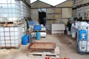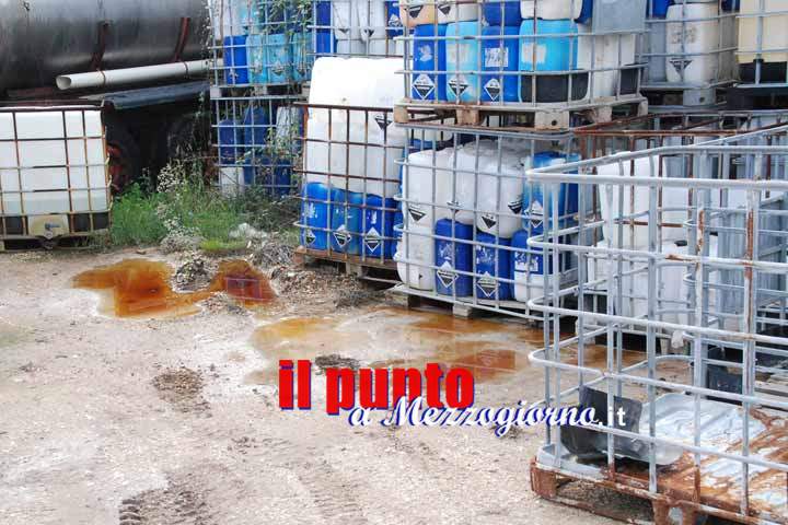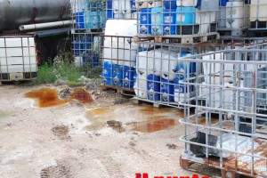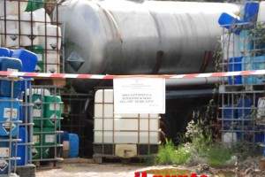 Un deposito, non dichiarato al fisco, funzionale all’esercizio di un’attività di commercio, volta alla compravendita di prodotti chimici (quali acido peracetico, acido solforico, acido cloridrico, glicole etilenico, soda, sodio idrato, ecc.) per uso verosimilmente industriale, senza alcun sistema di protezione e prevenzione dei rischi legati alla salute dei lavoratori ed all’integrità dell’ambiente. Il suolo infatti presentava evidenti infiltrazioni di percolato.