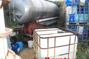 E’ stata rinvenuta anche una cisterna-rimorchio, parzialmente ricoperta dalla vegetazione, utilizzata come contenitore di acido nitrico, fumante da una delle due bocchette di carico.