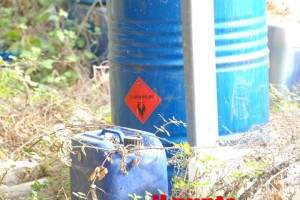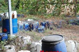 Nell’area vi erano inoltre rifiuti speciali sparsi ovunque, presenti da tempo, tanto da essere ricoperti dalla vegetazione: centinaia di taniche in plastica contenenti residui di prodotti chimici, pneumatici, teloni e tubi in plastica, materiali ferrosi di varia natura, recipienti in vetro contenenti prodotti chimici ad elevata tossicità , fusti metallici, manufatti in eternit, nonché una vasca in cemento armato di circa 200 mq e profonda circa 3,5 metri, anch’essa contenente rifiuti di ogni genere.