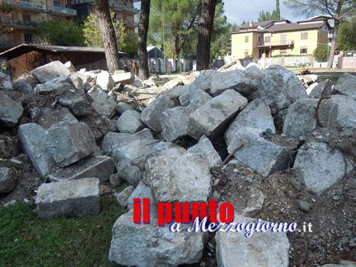Intanto sono state riportate alla luce le pietre della distrutta torre campanaria, che erano ammucchiate – così come avevo in precedenza segnalato all’assessore ing. Antimo Pietroluongo – sotto un ammasso di terra e sabbia per l’edilizia depositate lì da anni. Le pietre non sono tutte quelle numerate e rimosse in occasione dello smantellamento della torre nel 1967, essendo state in buona parte trafugate, tuttavia sono un bel numero, il che consente di pensare ad un loro riutilizzo per lasciare ai posteri una traccia di visibile memoria del glorioso campanile di origine medioevale.
