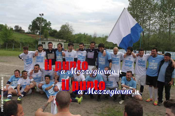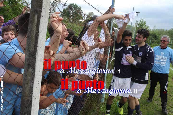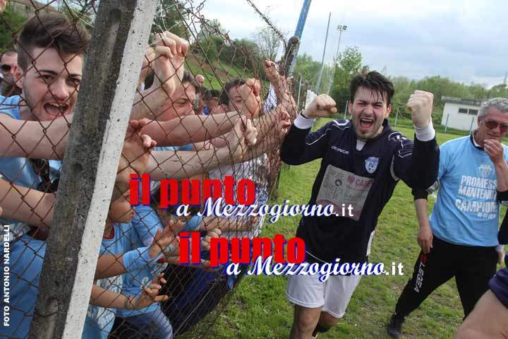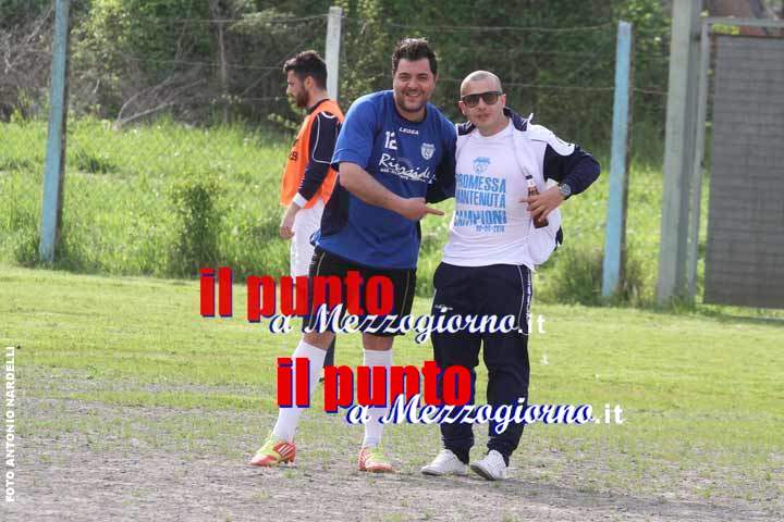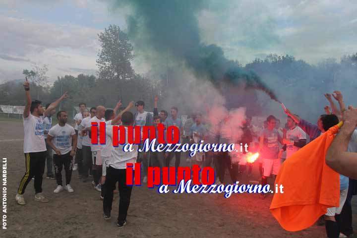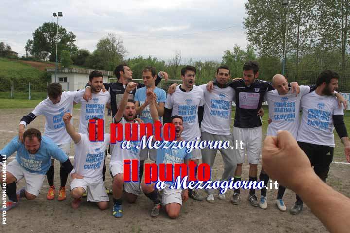 13 Aprile 2014 0 Di redazioneReal Theodicea batte il Castrocielo 5 a 2 e conquista la seconda categoria. Nonostante manchi ancora una partita alla fine del campionato oggi pomeriggio sul campo di Sant’Angelo la squadra ha vinto contro il Castrocielo garantendo la promozione alla categoria superiore. Tanta la partecipazione dei tifosi che hanno esultato e gioito insieme a giocatori e dirigenti ed è grande festa al campo sportivo di Sant’Angelo per la vittoria.