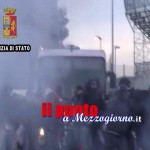 Parte la carovana dei 900 tifosi ospiti, ma durante il percorso, tre pullman si fermano e scendono alcuni tifosi di “fascia c†che cercano di aggredire i passanti e lanciano oggetti contro le auto in sosta.