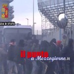 Proprio in questo momento un centinaio di tifosi ospiti, con il chiaro intento di venire a contatto con i locali, tentano di scavalcare il cancello di sbarramento che separa le aree destinate alle opposte tifoserie.