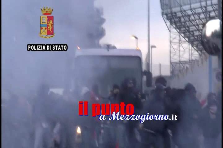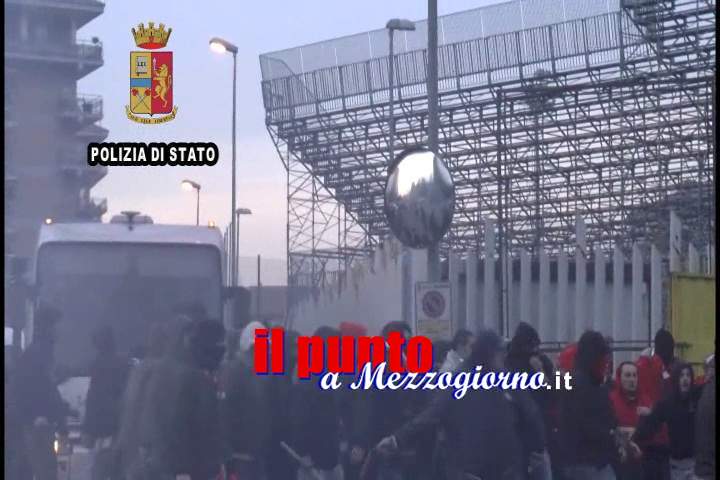 Proprio in questo momento un centinaio di tifosi ospiti, con il chiaro intento di venire a contatto con i locali, tentano di scavalcare il cancello di sbarramento che separa le aree destinate alle opposte tifoserie.