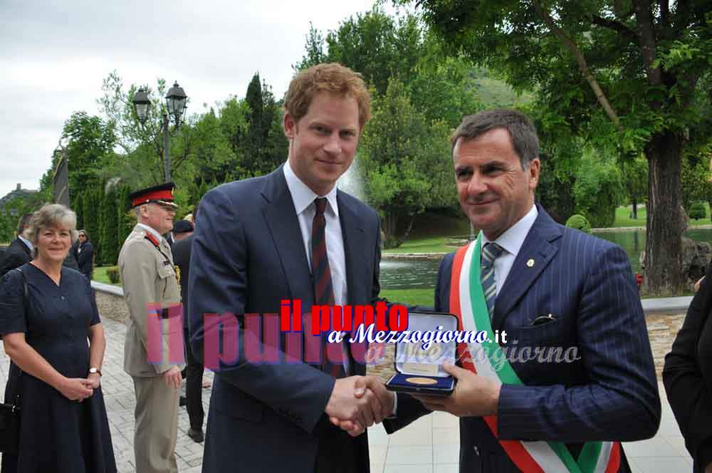 “È stato veramente un onore consegnare la medaglia commemorativa del settantesimo anniversario al Principe Harry”. Ha dichiarato in sindaco i Cassino Giuseppe Golini Petrarcone riferendosi al reale inglese, al termine della visita oggi al cimitero di guerra del Commonwealth di Cassino. “Ho avuto il piacere di spiegare al Principe i simboli raffigurati sulla medaglia, a partire dall’Atleta di Cassino, la rappresentazione della deflagrazione di Mastroianni, lo stemma del Comune di Cassino e la porta Pax di Montecassino. Il Principe Harry si è dimostrato molto interessato per quel che la medaglia rappresenta ed ha riconosciuto la porta Pax visitata nel corso della giornata di ieri dopo la cerimonia che si è tenuta presso il Cimitero Polacco. Devo dire che anche quella di oggi è stata una cerimonia molto toccante, cui hanno preso parte i rappresentanti di tutti i Paesi, che chiude una settimana in cui Cassino è stata al centro dell’attenzione mondiale come città simbolo di Pace e fratellanza. Sicuramente la visita a Cassino del Principe Harry ha creato molto fermento in città e tanti sono stati i cittadini che hanno voluto prendere parte alla cerimonia per commemorare le vittime presso il Cimitero Militare Inglese. Devo dire che questo 2014 è stato un anno davvero da ricordare per le tante iniziative realizzate in città , alcune della quali molto emozionanti, per celebrare nella maniera dovuta il settantesimo anniversario della distruzione di Cassino e Montecassino. Tanti i visitatori che in questo periodo sono venuti nella nostra città da ogni parte del mondo, contribuendo a rendere Cassino un vero punto di riferimento nel panorama internazionale.â€