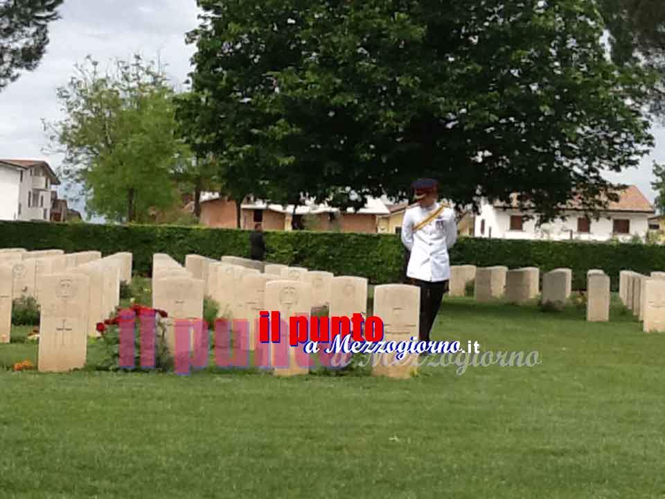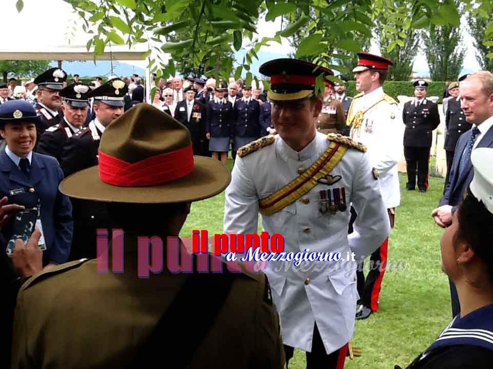 Nessun discorso, neanche una parola pronunciata. La presenza di Harry ha avuto un ruolo assolutamente simbolico e rappresentativo della casa reale. L’unico gesto è stato la deposizione di una corona di fiori davanti al monumento al centro del cimitero monumentale del Commonwealth in cui riposano i corpi di 4265 soldati di nazionalità diverse, Britannici, neozelandesi, canadesi, indiani, australiani, caduti nella battaglia di Cassino per lo sfondamento della Linea Gustav.
