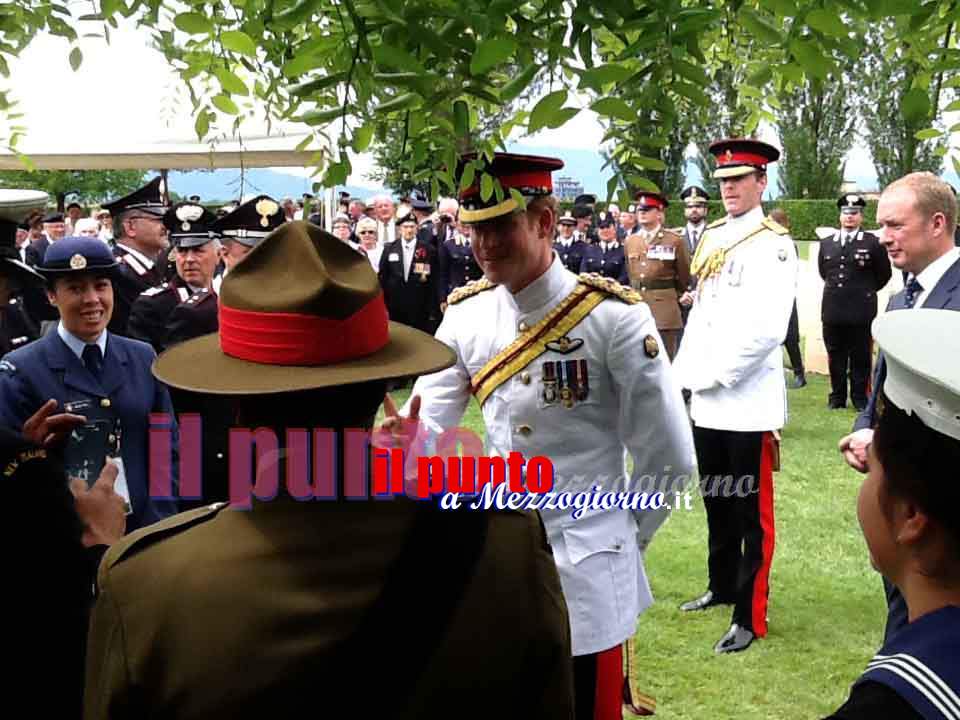 19 Maggio 2014Il principe Harry di Galles, quarto in successione al trono d’inghilterra è arrivato nel cimitero militare monumentale inglese in via sant’angelo a Cassino accolto dalle cornamuse del secondo battaglione del reggimento scozzese e dalla banda militare britanniche. Ad attenderlo, poco dopo le 10 da alcune migliaia di persone tra inglesi, italiani e autorità di entrambi i Paesi. Una cerimonia sobria che ha visto il cappellano dell’esercito inglese Jonathan Woodhousee e l’arcidiacono di Italia e Malta Jonathan Bordman officiare una funzione religiosa con rito anglicano.