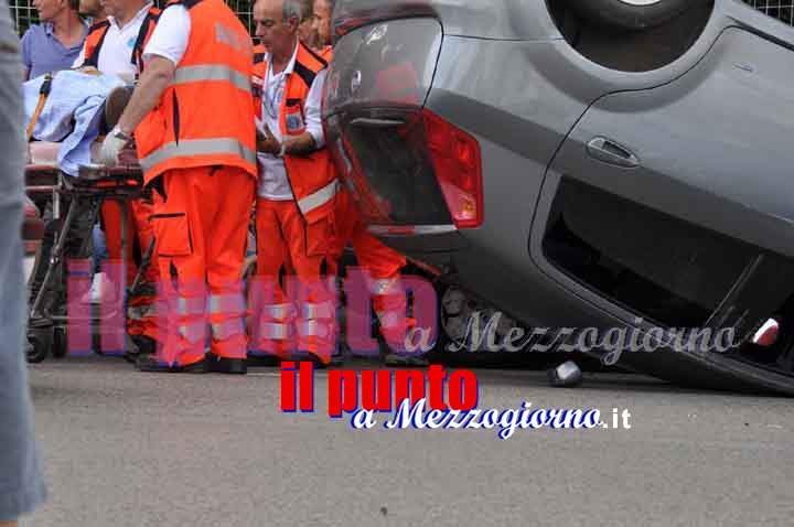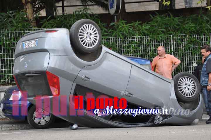Auto ribaltata in centro a Cassino, ferita coppia di giovani – LE FOTO