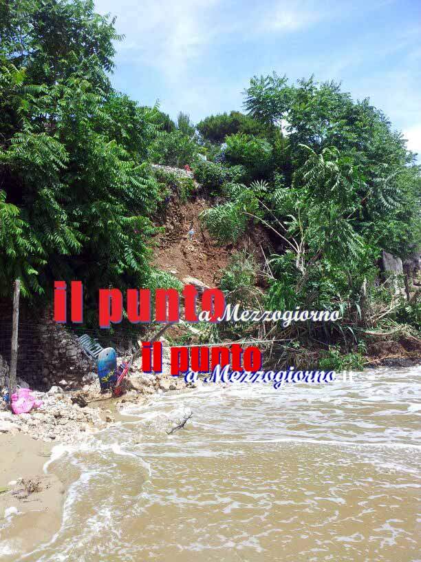 18 Giugno 2014Uno smottamento di diverse decine di metri cubi di terreno ha riguardato ieri la splendida spiaggia di Fontania a Gaeta. I pochi metri quadri di spiaggia sono famosi non solo per l,aspetto paesaggistico ma anche per quello storico. Infatti è anche un importante sito archeologico dato che vi sono i resti della villa del console dell’antica Roma Gneo Fonteo risalente al Primo Secolo dopo Cristo. Appena 10 giorni fa, i tecnici del comune di Gaeta, intuendo il pericolo avevano interdetto la zona al passaggio e allo stazionamento. Ieri un forte nubifragio ha causato la frana che è arrivata fino alla riva. Si dovrà valutare il danno subito dalle strutture storiche.