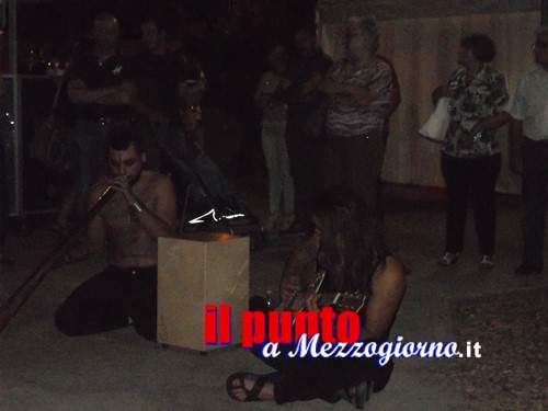 La Compagnia del Teatro Lunatico direttamente dall’Emila Romagna, si è esibita con una performance attraverso cui, da una nuvola sorge una dama bianca che danza, all’interno di una sfera trasparente, in mezzo a mille bolle di sapone fosforescenti e ruba la luce alle stelle per illuminare la propria veste e giocolare con sfere di cristallo dai mille colori.