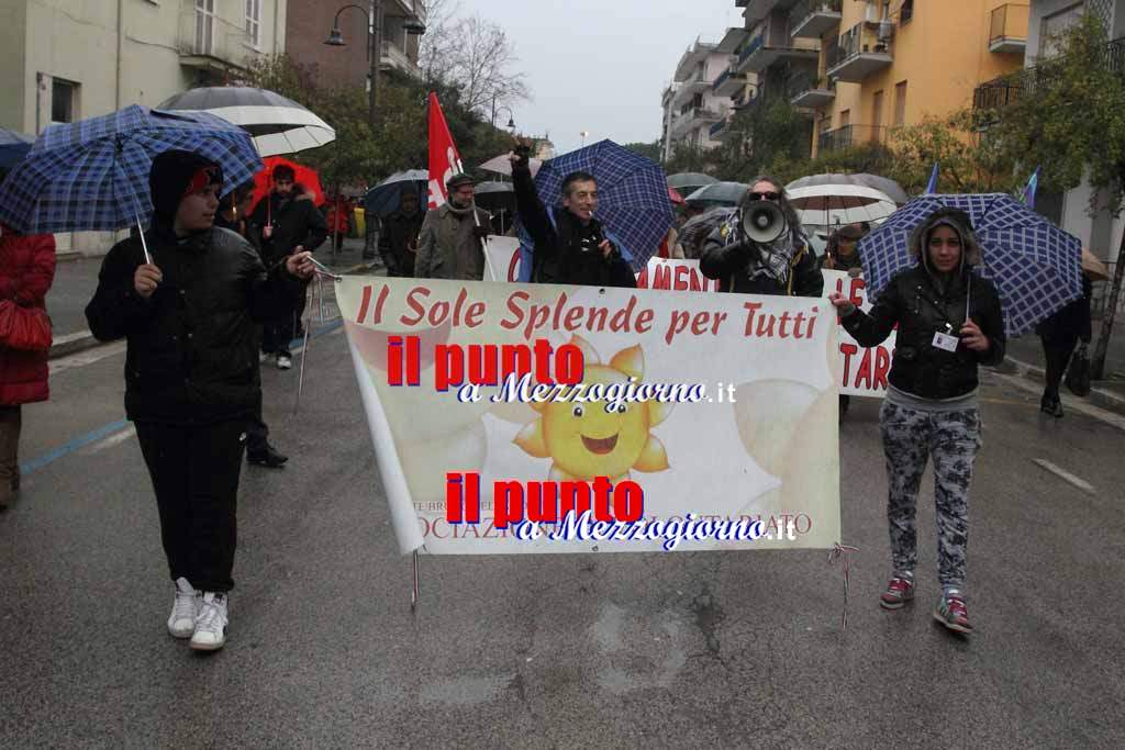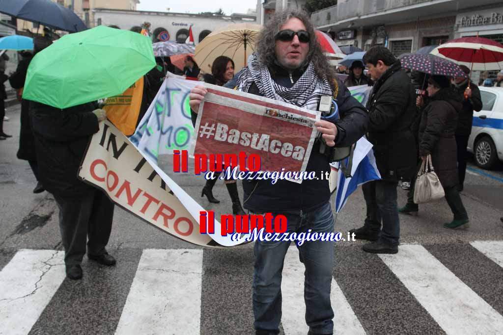 31 Gennaio 2015La pioggia non ha fermato il popolo ‘anti-Acea’. Il comitato “Acqua nostra” ha fatto centro con la manifestazione che si è svolta oggi pomeriggio a Cassino. Striscioni, slogan e ombrelli per il corteo che è partito da piazza Garibaldi e, dopo aver attraversato le vie principali della città martire ha raggiunto piazza De Gasperi davanti il Comune. Tanti i cittadini che hanno aderito alla manifestazione a cui se ne seguiranno altre. E’ già stata fissata una nuova data per la mobilitazione.