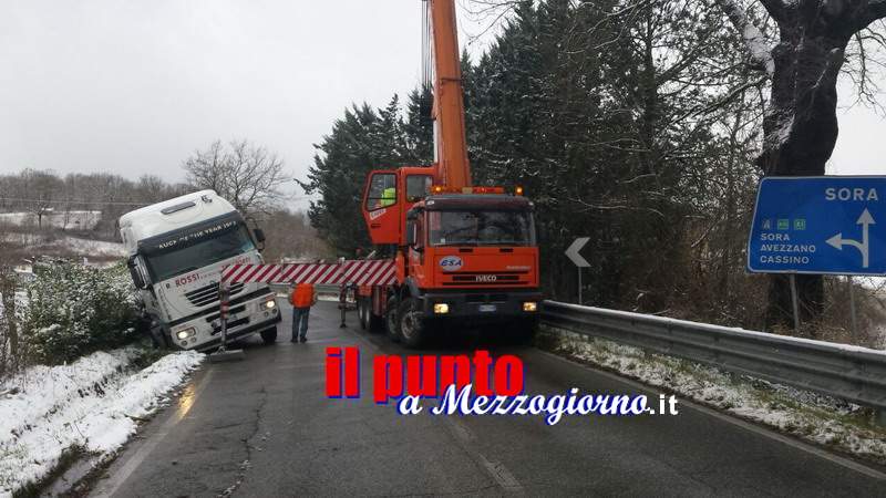 9 Febbraio 2015Due autocisterne che trasportavano gasolio sono uscite di strada la Prima a Pontecorvo una seconda sulla strada provinciale tra Posta Fibreno e Broccostella. A Pontecorvo, Sulla Via Leuciana, il mezzo pesante si è letteralmente ribaltato ma per fortuna la cisterna ha retto e il combustibile non è stato sversato. E’ stato però necessario effettuare il travaso in un’altra cisterna. A Postafibreno, invece, l’autocisterna è uscita di strada solo con alcune ruote del fianco destro rimanendo in bilico. E’ servito della polizia stradale per veicolare il traffico e di una autogru per addrizzare il mezzo.
