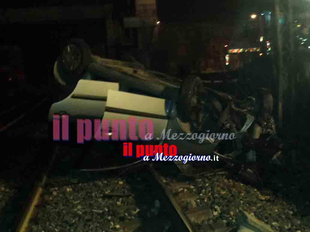 Rischiano di “prendere” un treno in corsa con l’auto a Frosinone. Finiscono sulle rotaie