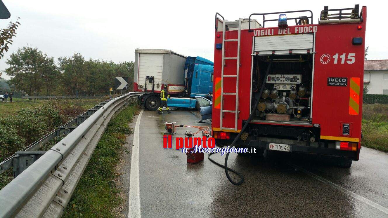 Tir sbanda a Pontecorvo e si “aggroviglia” travolgendo auto, donna in gravi condizioni