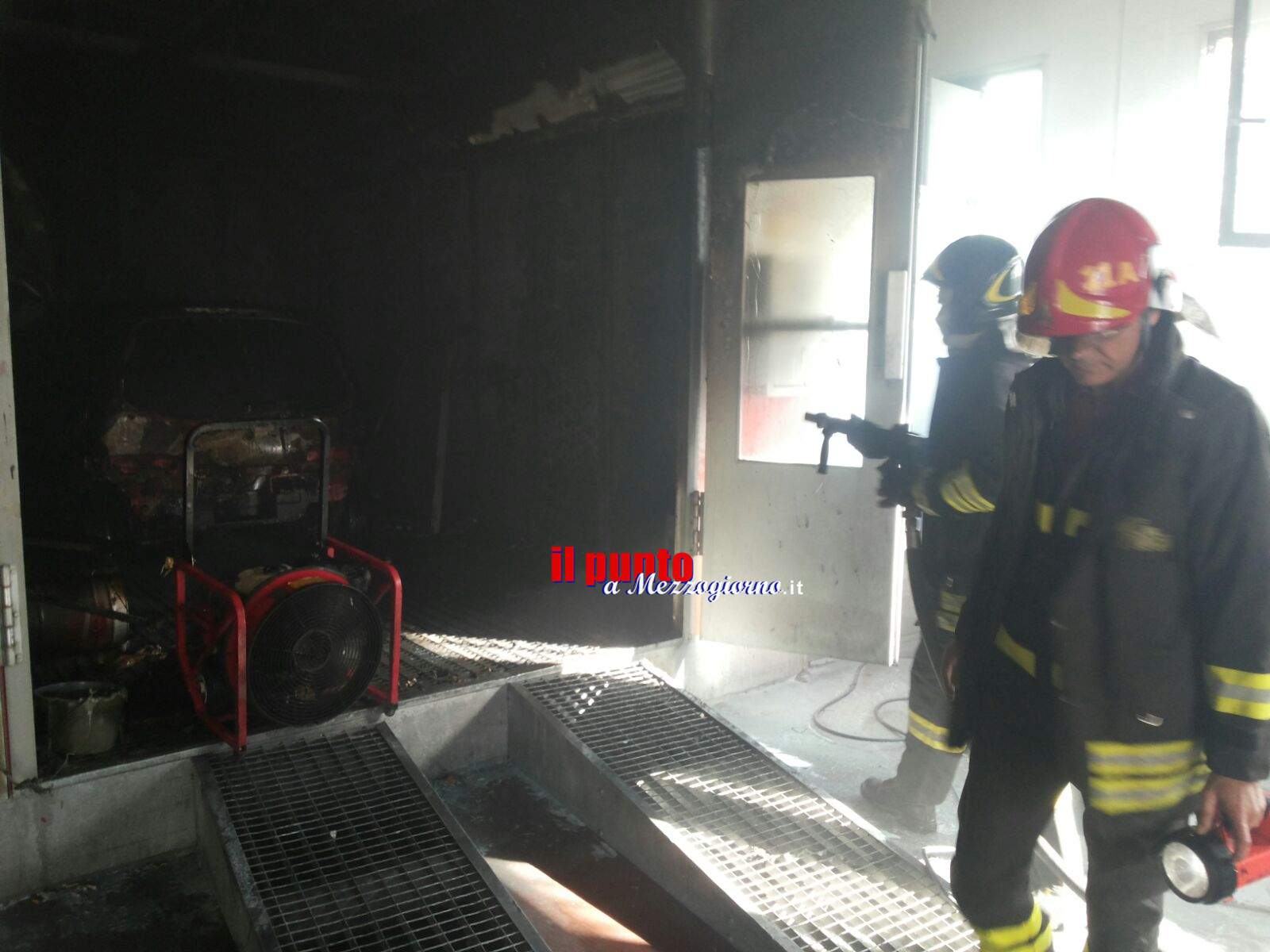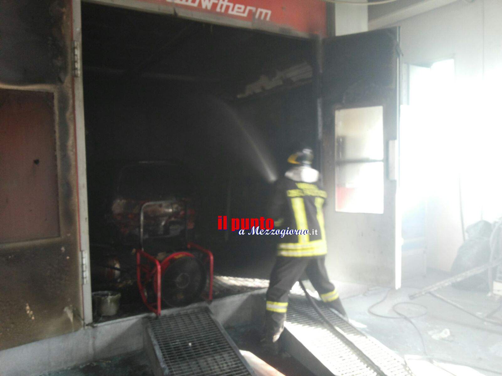 Autocarrozzeria in fiamme a Latina, paura e tanti danni