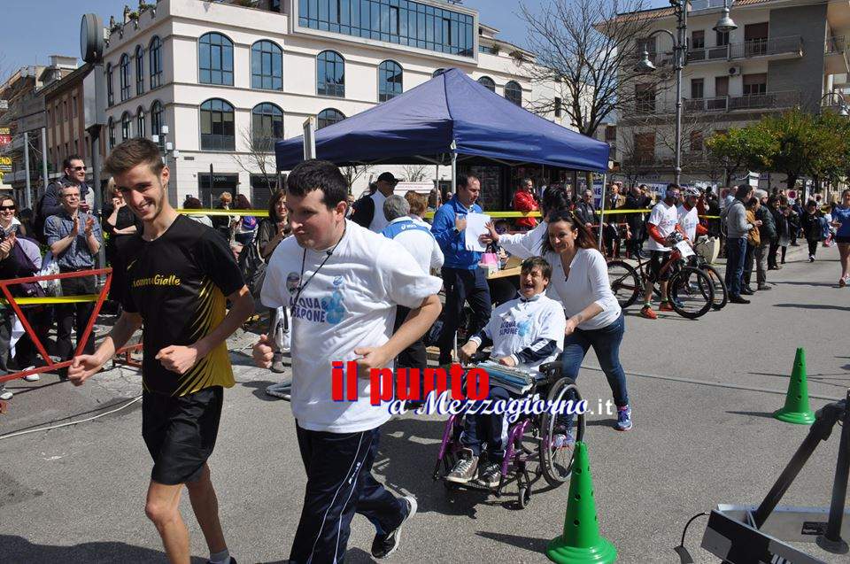 20 Marzo 2016Cassino – Il “Campionato Nazionale di marcia†per il terzo anno si è svolto a Cassino, ma questa edizione per la prima volta, si è arricchita di un momento “speciale†con una gara non competitiva “Diversamente in marcia†a cui hanno preso parte oltre trentatré ragazzi disabili provenienti da varie regioni italiane, ma anche dal Centro diurno ‘Arcobaleno’ di Caira, da Piedimonte San Germano e Pontecorvo. Una gara non competitiva per sensibilizzare tutti sull’importanza dello sport come uno dei principali veicoli per l’integrazione sociale delle persone disabili. In quest’ambito, a margine dell’evento sportivo in sé, che ha visto oltre trecento atleti lottare per i vari titoli nazionali di categoria, si è tenuto un convegno dal titolo “Lo sport e la marcia incontrano la disabilità â€. Nell’introdurre i lavori il presidente dell’associazione “Sport No Frontiere†che ha organizzato l’evento, Valeria Santini, ha voluto porre l’accento su quanto sia importante, per i disabili, al pari delle persone normali, la pratica sportiva, non solo sotto l’aspetto del benessere fisico, ma soprattutto come uno degli strumenti per una loro maggiore integrazione sociale.