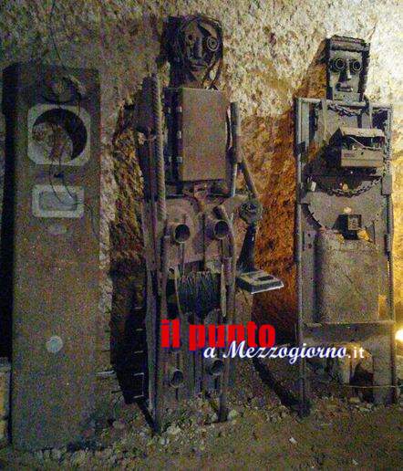 Tra scritte sui muri, gli oggetti recuperati, i racconti di chi ha vissuti i drammatici momenti di 70 anni fa, si parla anche di Cassino grazie alle opere realizzate da Elio Mazzella, di San Pietro Infine e conservate gelosamente in quei luoghi. Opere che sottolineano il senso di aberrazione della guerra. Figure dalle sembianze umane realizzate con oggetti di ogni genere recuperati dall’artista a Cassino e riciclati in un’opera che in alcuni casi è anche messaggio di speranza come la mamma che ha nel suo ventre “metallico” un bambino. Una meta, quella della Galleria Borbonica, da visitare.