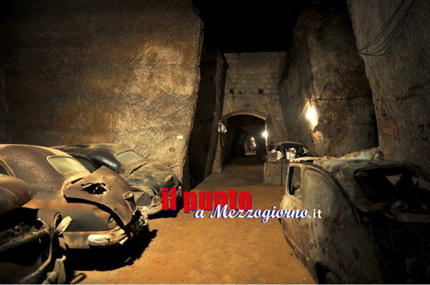 E’ lì, a decine di metri di profondità, sotto la Nunziatella e la Napoli bene, che scorre un budello scavato nel tufo nel 1853 dai Borboni. Prima cave, poi cisterne, e successivamente un percorso nel sottosuolo per permettere ai soldati di arrivare velocemente al palazzo Reale in piazza Plebiscito in casi di moti, il tunnel e i locali che lo compongono sono stati effettivamente usati dai napoletani, poco meno di un secolo dopo, per sopravvivere ai bombardamenti della Seconda Guerra Mondiale. Ma la galleria fu anche deposito giudiziario dove nel dopoguerra vennero ammassate auto e ciclomotori degli anni ‘40, ‘50 e ’60. Carcasse di mezzi d’epoca dissotterrate dalle immondizie e che restano lì “parcheggiate” per essere viste dai turisti che affollano il cunicolo respirando l’aria intrisa di umidità e sofferenza di quei luoghi dove nel dopoguerra trovarono rifugio circa 5mila persone.