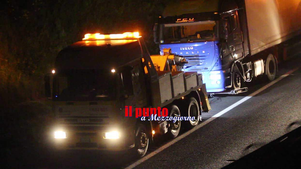 L’incidente è successo sul tratto dell’autostrada del sole sulla corsia sud tra i caselli di San Vittore e Caianello nel territorio di Mignano Monte Lungo. Per circa due ore il traffico è rimasto bloccato e si è formata una lunga coda di auto e camion.
