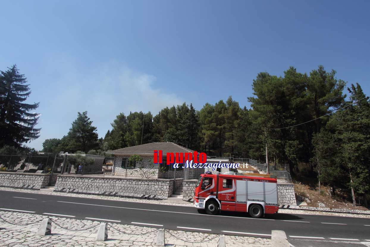 Terzo giorno di fuoco su monte Rotondo a Mignano, fiamme lambiscono il museo di Montelungo