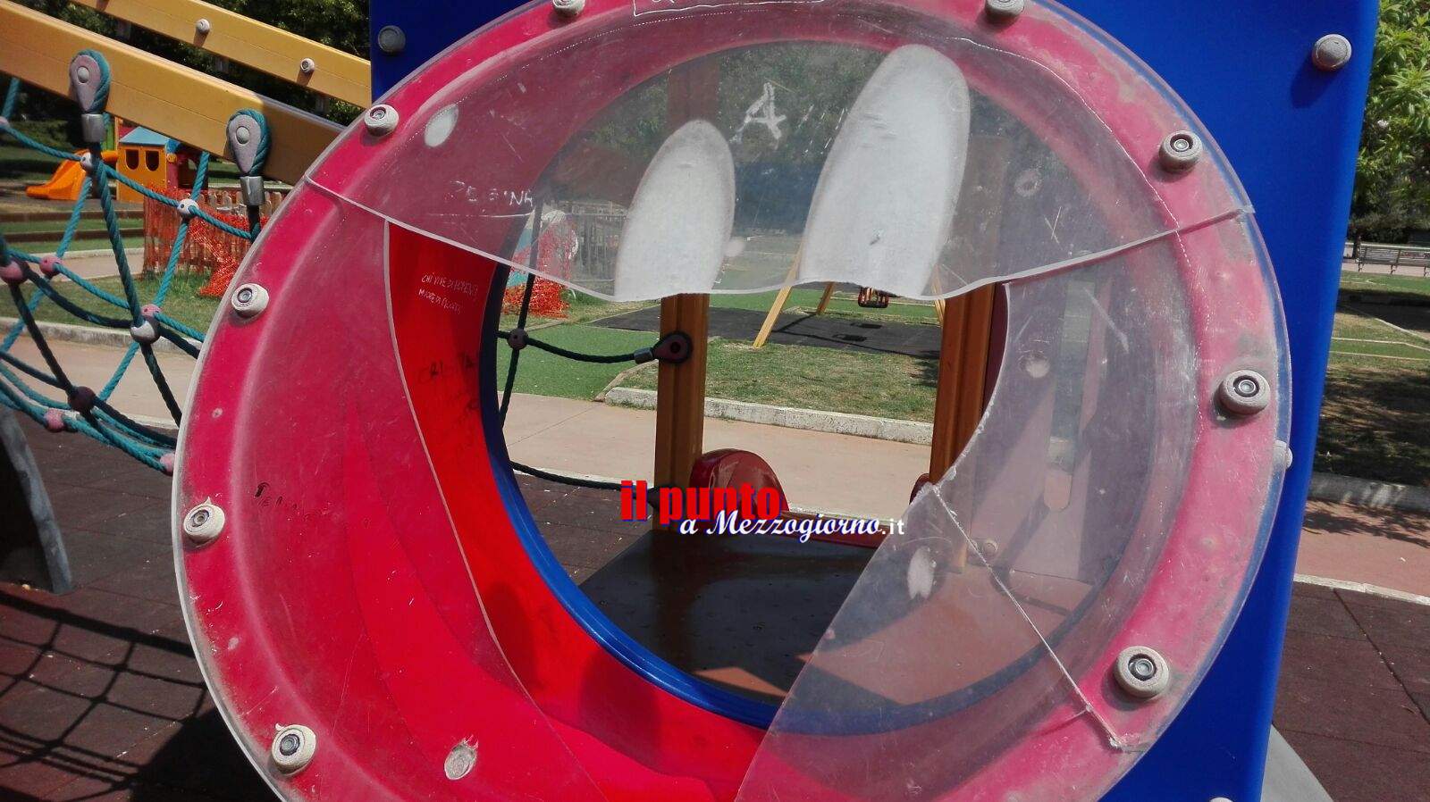 Villa comunale di Frosinone. Giochi danneggiati e pericoli per i bambini. Allarme dei cittadini