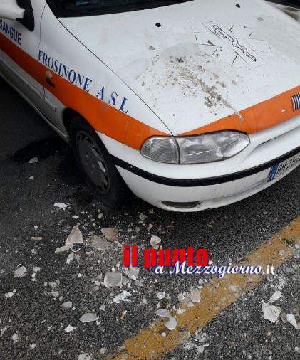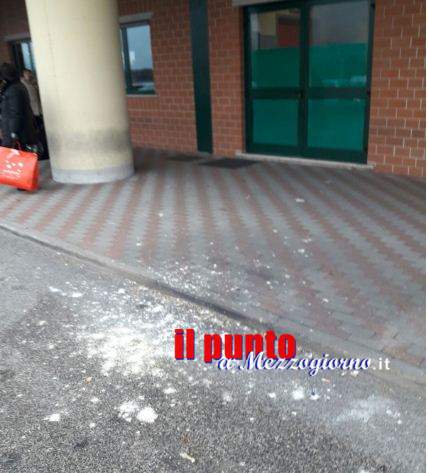 Pioggia di cornicioni all’esterno dell’ospedale di Cassino