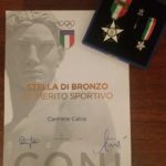 Il Presidente del Coni Lazio, Riccardo Viola, premia il prof. Calce per l’impegno ultraventennale nello sport