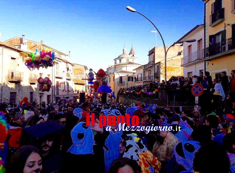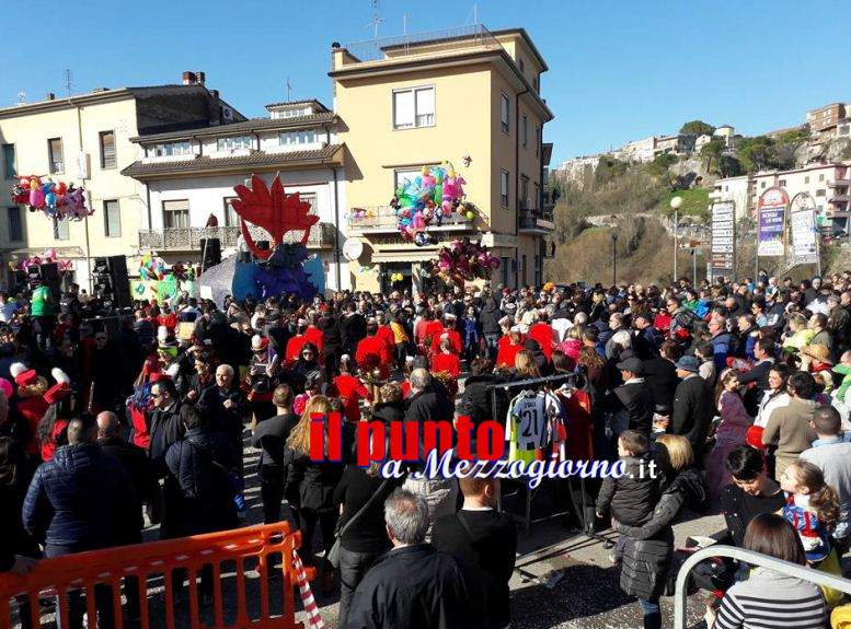 Un fiume di persone al Carnevale di Pontecorvo, sfilano i carri allegorici