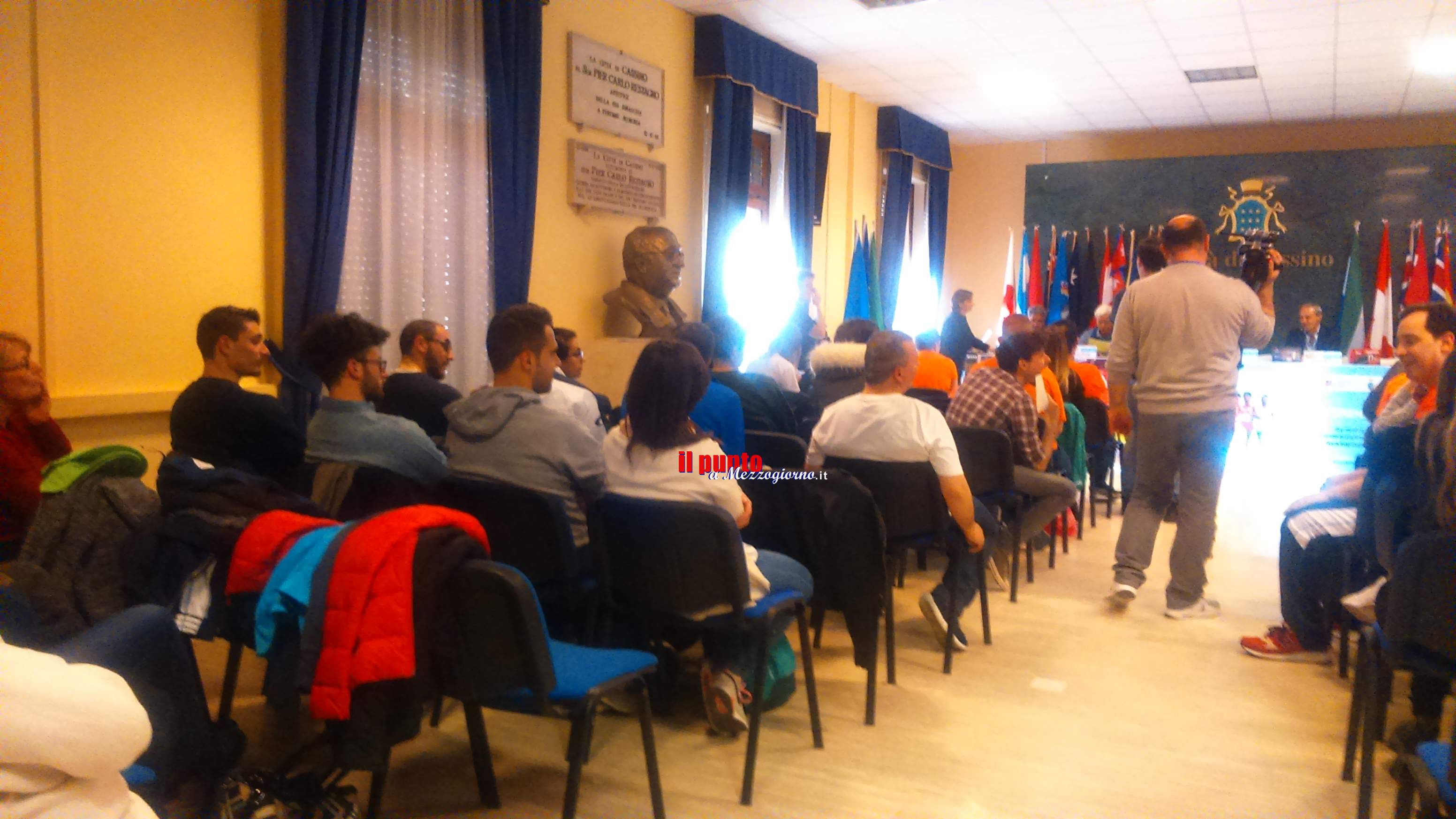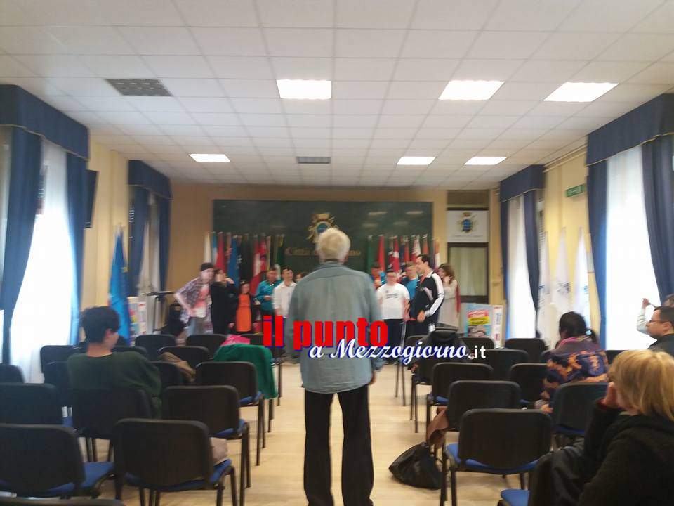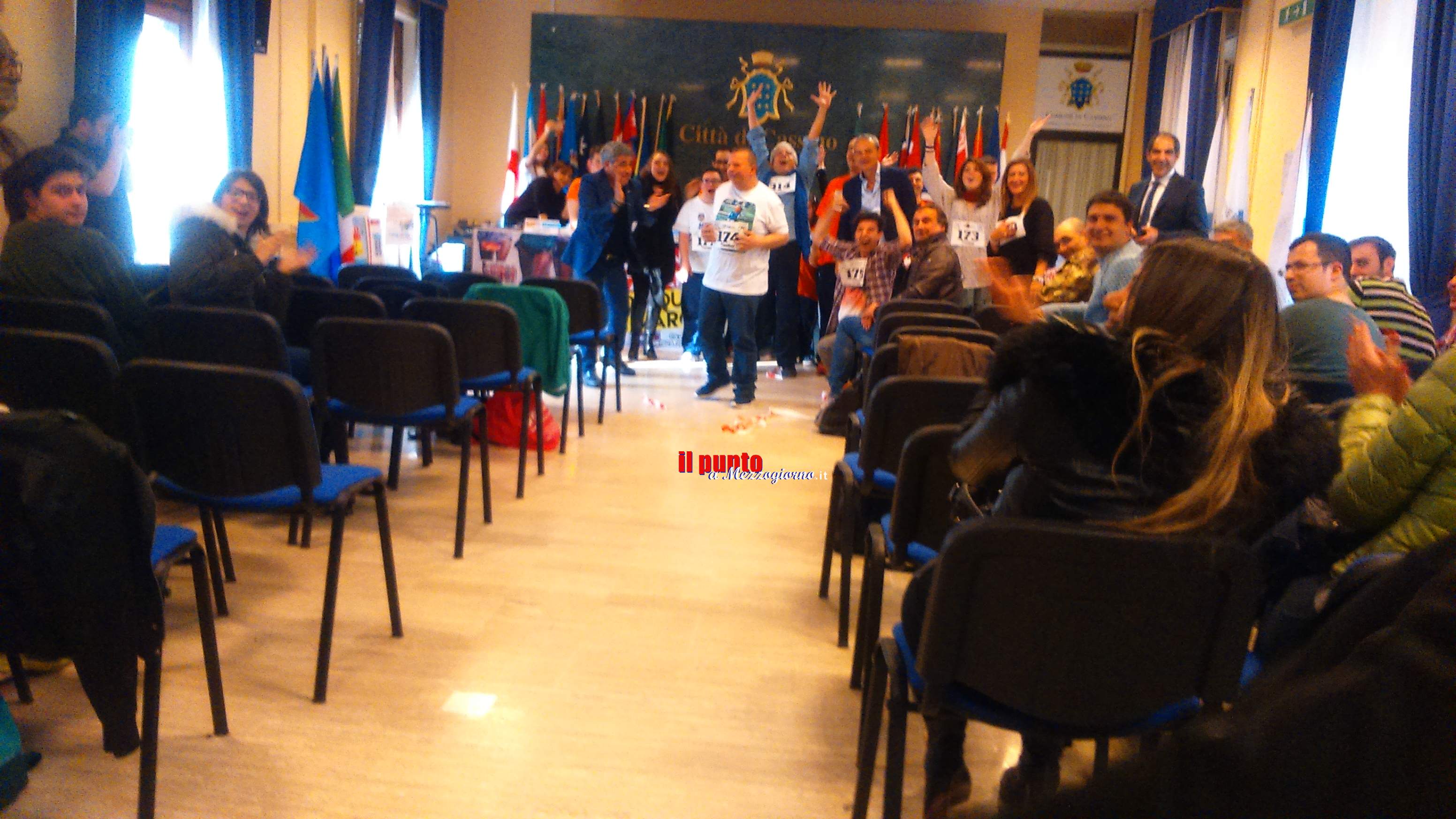 22 Marzo 2017Cassino – Sala Restagno del comune di Cassino gremita, questo pomeriggio, in occasione della presentazione dei “Campionati Nazionali di marcia†organizzati dalla ASD Kronos Roma e dall’associazione “Sport No Frontiere†di Cassino, che anche quest’anno hanno scelto le strade della Città Martire per una gara di valore nazionale ed internazionale. La presentazione dell’importante evento sportivo, alla presenza del sindaco Carlo Maria D’Alessandro, del Rettore dell’Università di Cassino e L.M., del presidente del Cus, Carmine Calce, e di Rosario Petrungaro della ASD Ktonos Roma, è stata l’occasione per presentare la II edizione di “Diversamente in marcia†organizzata dall’associazione “Sport No Frontiere†di Cassino. Una gara non competitiva, di cinquecento metri, riservata ai ragazzi diversamente abili per favorire la pratica sportiva delle persone con disabilità , non solo sotto l’aspetto del benessere fisico, ma come “volano†per la loro integrazione sociale. Obiettivi che l’associazione “Sport No Frontiere†porta avanti da tempo attraverso altri importanti eventi sportivi. La manifestazione “Diversamente in marcia†rappresenta un momento di pratica sportiva, ma soprattutto – ha sottolineato il presidente dell’associazione “Sport No Frontiereâ€, Valeria Santini, una giornata di aggregazione e di sensibilizzazione ai problemi del mondo dei disabili. Quest’anno – ha proseguito la dott.ssa Santini – abbiamo voluto integrare la manifestazione oltre che con la competizione sportiva dei ragazzi accompagnati dai marciatori e dagli allievi dell’80° Reggimento “Romaâ€, anche con il teatro. Per questo abbiamo voluto la partecipazione di un testimonial speciale, l’attore-regista Marco Di Stefano che ha voluto mettere in scena un piccolo sketch con gli attori diversamente abili del CUT, diretto da Giorgio Mennoia. In questa seconda edizione – ha proseguito Valeria Santini – abbiamo voluto dare risalto all’aspetto creativo dei ragazzi disabili che frequentano il Centro Teatrale Universitario di Mennoia attraverso una forma particolare di integrazione, come il teatro della Comunità  che Marco Di Stefano realizza da anni in Italia e all’esteroâ€. Durante la conferenza stampa, infatti, Marco Di Stefano, con un gruppo di disabili del CUT ha dato vita ad uno sketch che evidenziasse le potenzialità dei ragazzi, ma che può essere estesa a tutti i componenti della società civile, della polis, in altri termini della Comunità .