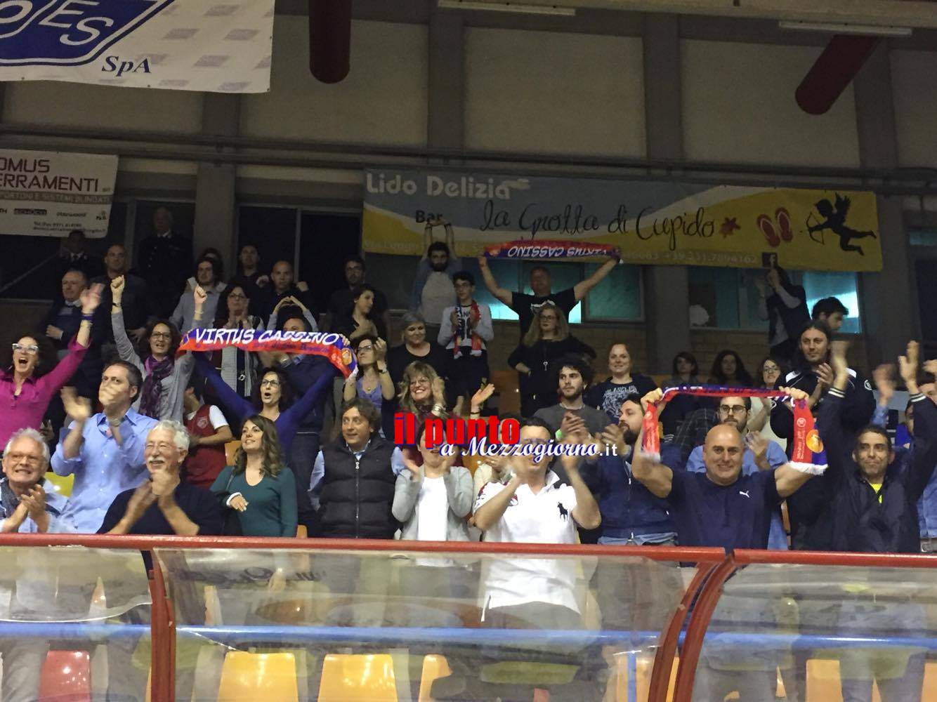 19 Aprile 2017 0 Di Felice PensabeneCerotti a go-go, ma il cuore e la forza oltre l’onore della BPC Virtus Cassino sono senza limiti. Esultano e fanno festa alla sirena dei 40 minuti di gioco gli oltre cento, 100, tifosi che affollano il settore ospiti del Palasport del litorale di Scauri, frazione di Minturno, provincia di Latina.